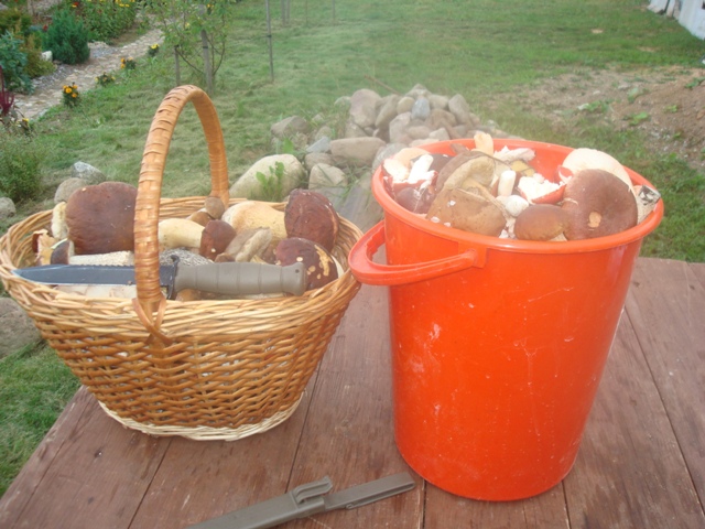 Всем любителям тихой охоты доброго времени суток.Сегодня приехал с дачи,она во Псковской губернии,белые и подосиновики "попёрли",причём резко,в субботу был в лесу,набрал всякого ассорти пол корзины и белых пяток,в воскресенье так же,а в понедельник поехали с женой и сыном,они попросили,а меня уговаривать не надо,могу ездить хоть каждый день