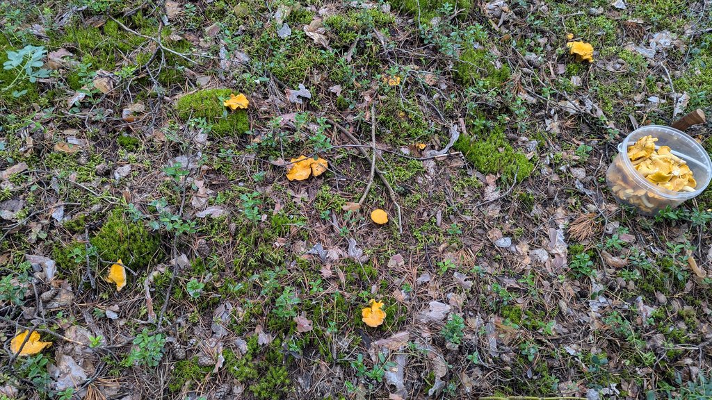 Прокатился по старым местам, где прошлый год собирал по 20 кг. лисичек. Грибов очень мало, да и те сохнут на корню. Набрал совсем немного оглядываясь по сторонам, осторожно срезая лисички.