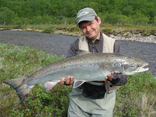 А где это.(река)Я с бреками на квадриках ездил на два дня.Но не "попал"не шла.Хариус только..Не было( но под камнем ,с прибором ездил товарищ кошелёк гиней нашёл и часы ,я находил остатки голандской фактории 1573 по монетам)..Только в море брал и меньше.А сейчас поедем "червивая"будет в пресной(и не сёмга).Отец раньше тайменей ловил.Приходилось говорил их стрелять,что бы вытянуть.Иначе уходили.Задевал его фото в детстве.Был экз на 65 кг или около.Наверное таких уже нет.