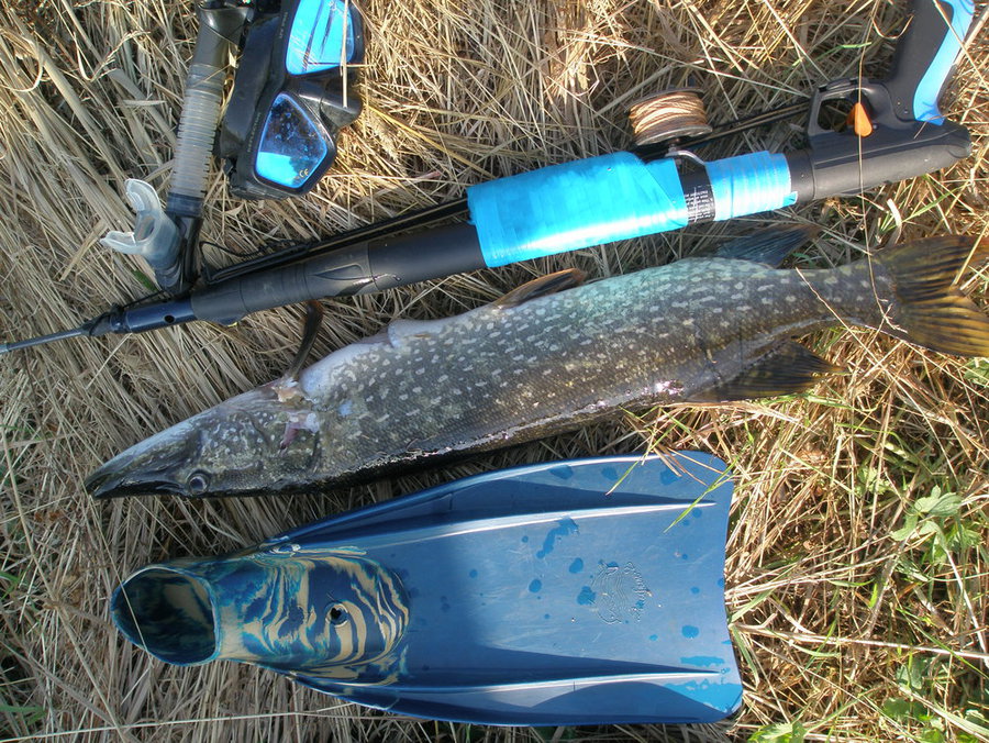 Вчера тоже съездил на подводную охоту. Решил проверить то место куда меня на прошлой охоте щука увела. Места оказались очень интересные для охоты, глубина до 9 метров - видимость почти 5. Плавал с экшкамерой, кое что поснимал для просмотра зимой, в том числе и борьбу с трофеем. Ну и сам трофей - вес 4,1 кг.