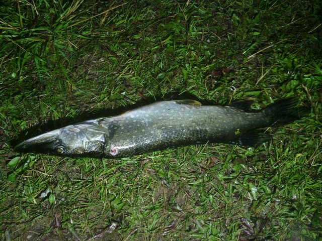 До этого, в среду чтоли, были в найт на прудике новом для меня. Мелкой рыбы (до полукила и чуть больше) встречается, но стрелять такую уже давно не интересно (вот ведь...в 2008 году мой максимум был подъязок на 400 грамм, и мне казалось это мегарыбой Примерно полтора кг, чуть меньше. Но такой вес рыба имела из-за того, что в желудке у неё была чрезвычайно крупная добыча для её веса Надеемся на лучшее, ждём прозрачности |