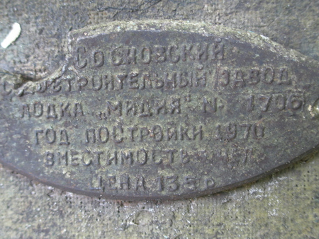 оказалась нормальная не худая лодка. С трудом с товарищем её раскопали и вытащили на берег, где освободив её от ила, песка и воды своим ходом сплавили до места стоянки машины. Там её более-менее отмыли и стали думать как её везти. Разложив сиденья в машине (по ширине багажника она как-раз) погрузили её и с открытым багажником доставили домой. Лодка называется "Мидия" - изготовлена на Сосновском судостроительном заводе в 1970 году, думаю что утонула минимум лет 10 назад, может и более. Вложенные эскизы изображений |