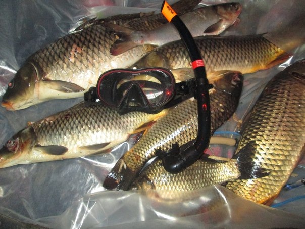 Всем "нхнч"вот подводная охота, с братишкой , в Липецкой области, Липецкое водохранилище, сразу говорю всё подстрелено днём, рыбнадзор рейд устраивал, мимо наших лодок прошли, но один хрен не приятно))