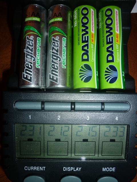 QUOTE(Serg-SPb @ Mar 25 2013, 14:23) Так, что берите любые хорошие аккумы 2200-2700мАч и автоматическую зарядку (что бы сама выключалась при заряде). И забудете про батарейки года на 2-3. Если возьмёте один комплект аккумов, то возите с собой комплект Дюрасела на всякий пожарный P.S. почти в любом магазине есть GP 2500-2700, таких вполне достаточно и цена невысока. Я купил с зарядкой комплект 4шт за 390р в М-видео, правда зарядка не автомат, но пофиг, у меня автомат есть Юзаю уже много лет во всей технике (приборах, фотиках, плеерах, рациях) аккумы - никаких бед. Раз купил и 2-3 года стабильно спокоен. Коллеги-при выборе не забывайте еще что многое зависит от прибора и его аппетита + еще от времени сколько тратите на выезд. ---------- Насчет GP- хотел подкрепить документально-но не нашел фото. Пробег 1 сезон-емкость 2500 Погонял их на днях-жаль не знаю изначальных параметров-не было тогда еще умной зарядки. Так вот емкость у всех примерно 1650-1700- что явно не в пользу марки. Для экономичной Терры,АСЕ-они может и вполне подойдут-но только не для моего Ехр. Прикреплю фото после теста новые ДЕУ (2500)-тоже явно не соответсвуют заявленным. А вот Энерджрайзер(2650)-неплохой результат после 2-х сезонов. Написано- JAPAN.----------------Насчет умной зарядки-ВЕЩЬ!!!!Еще не слышал что бы кто либо пожалел потраченых денег. Сообщение отредактировано VITEKKU: Apr 4 2013, 20:10 Вложенные эскизы изображений -------------------- Карта С\б 5336 *** 1659.