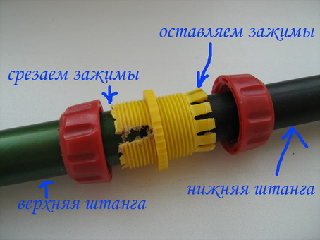Здравствуйте. Спасибо за ответ, успокоили. Надеюсь, аппарат не подведёт. Штанги разбалтываются у всех МД, есть ещё один способ «вылечить», вернее предотвратить этот косяк (этот способ описан на этом форуме, я сделал также). Берётся цанга для соединения шланга (продаётся в магазинах «Всё для сада», 20 руб.) и соединяем штанги. (Смотрите фото).