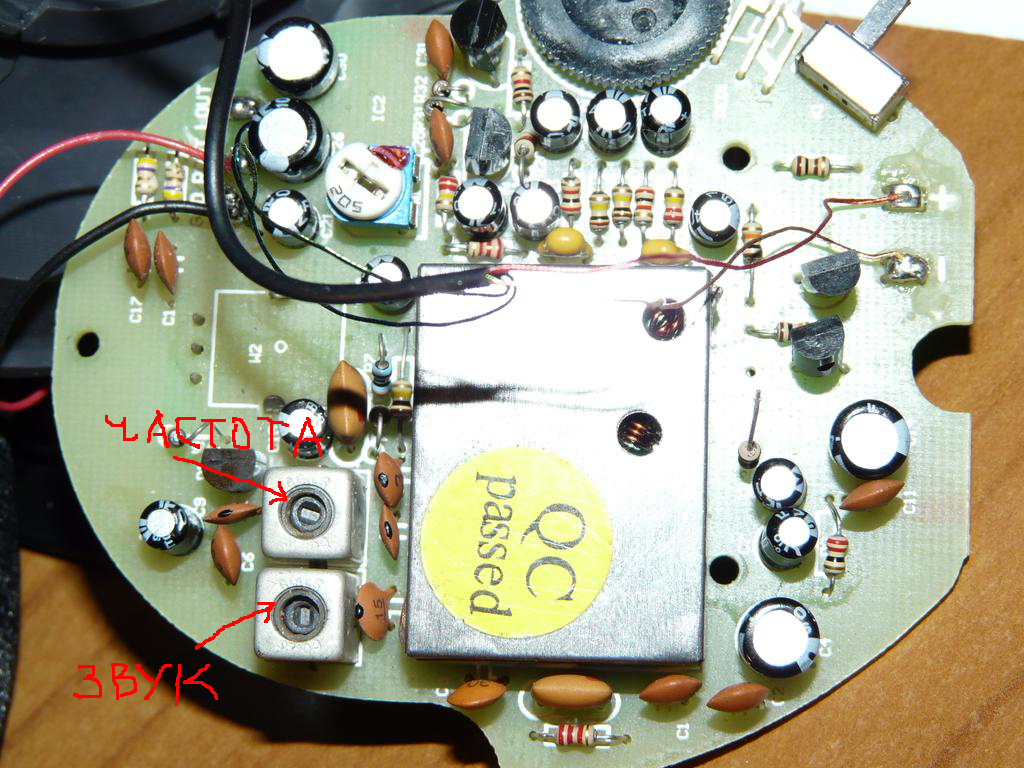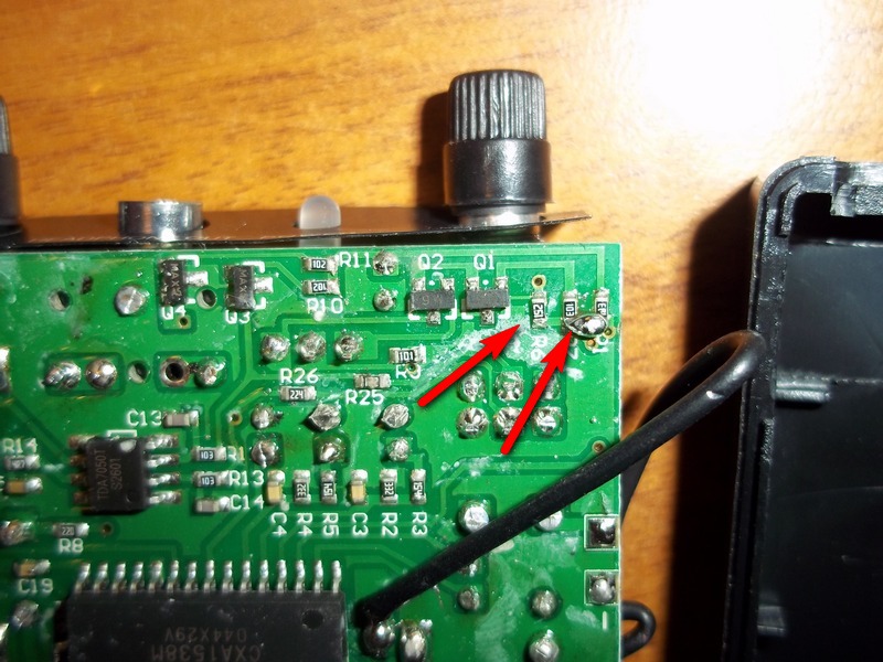 Рассказываю,может кому пригодится. 1.Разбираем- снимаем крепление на ремень,под ним спрятан саморез. 2.На плате убираем два резистора. 3.Настройку частоты устанавливаем в среднее положение и настраиваем контур (отверточка из зубочистки или пластика)до появления четкого звука. Собираем и в поле Вложенные эскизы изображений -------------------- "Русские своих не бросают"