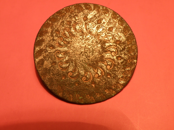 На самом деле мож это и не пуговица. Надо размеры и ушко. Скорее нашивная бляшка на ремень.