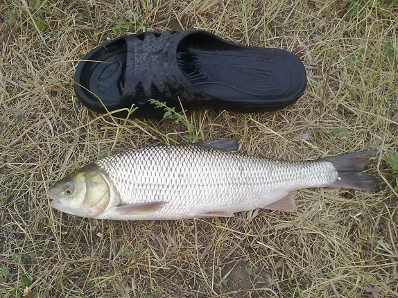 GoWest, отличная рыба у вас, язи и густера - загляденье... С удовольствием половил бы.. Густеру ловил на Сейме, а язь не попадался.. Слышал крупного вываживать удовольствие, упирается... У нас основной адреналин это рыбец от 400 гр. и выше... вот это товарищ упертый.. Ну есть правда еще рыбка знатная, прижилась у нас и развелась неплохо.. Это вырезуб, ловить нельзя, в Красной книге... хотя все ловят.. По силе и скорости превосходит и рыбца, и голавля и даже сазана, при одинаковом весе.. Вот один товарищ.. попался впроводку при ловле белой рыбы... Мой тапок 46-го размера... Сообщение отредактировано gefest: Jun 9 2013, 01:16 Вложенные эскизы изображений -------------------- Nulla dies sine linea