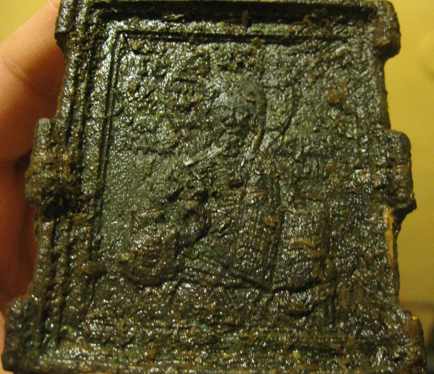 Проклейка,покрытие мастикой,запаивание очагов корозии оловянно-свинцовым припоем.Но первоначальный вид востановить этими способами вряд ли удастся.Это скорее консервация и предохранение от дальнейшего розрушения.Лучше всего мне кажется мастика а сделать её можно из смеси мела или талька(чтобы блеска не было) канифоли и немного серой краски(можно сухую гуашь).Подогреть канифоль и добавить краситель и мел,перемашать до однородности и наносить горячую смесь зубным шпателем или другим инструментом с гладкой плоскостью.После остывания выровнять шабером или надфилем,при необходимости придать рельеф деталям.Канифоль легко смывается спиртом,поэтому если мастика легла неудачно, её можно смыть или придать поверхности лощёный вид спиртовым растворителем. |