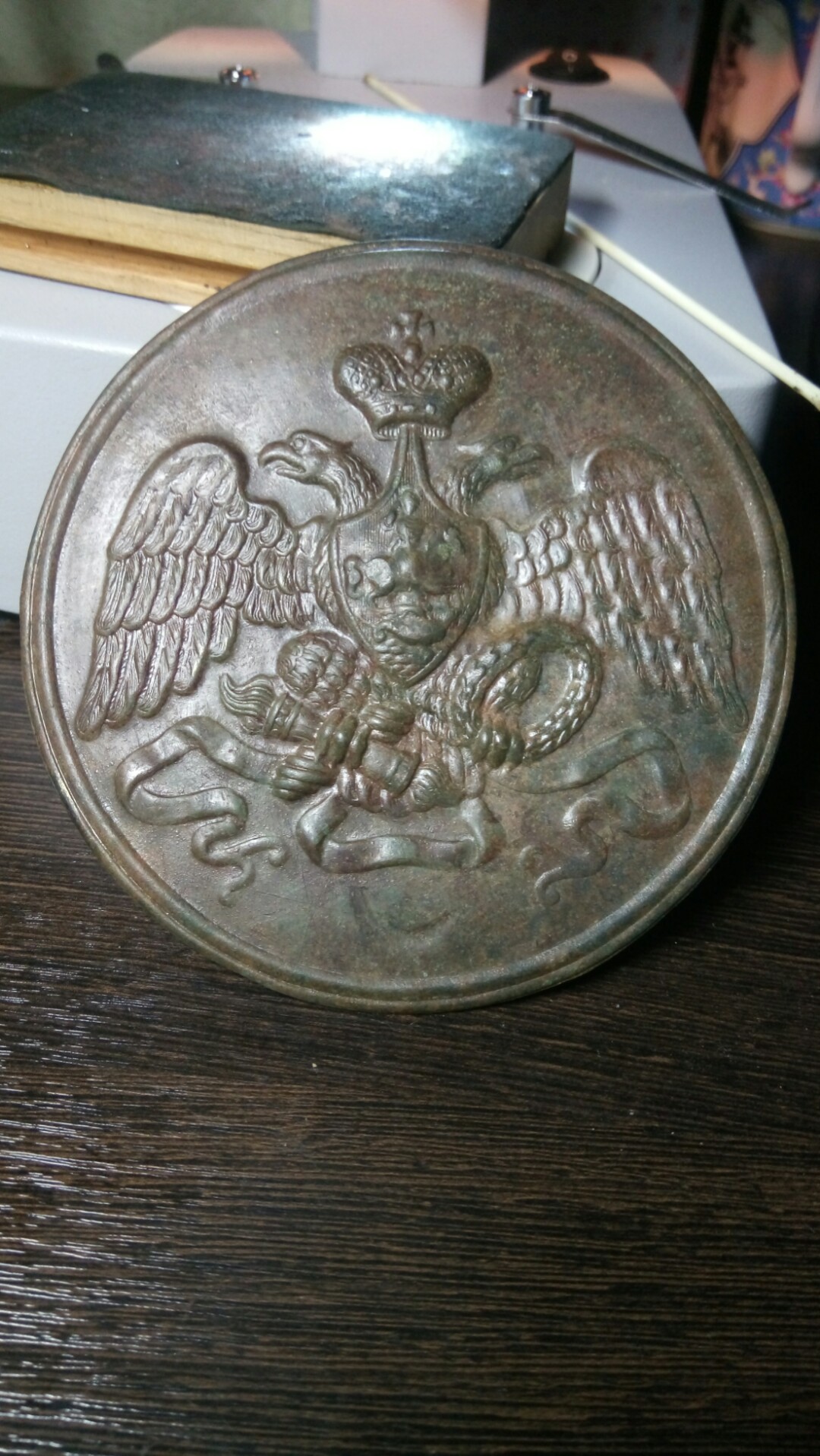 QUOTE(Алексей Пенза @ Oct 18 2017, 09:21) Нужно ли чем- то покрывать или обрабатывать данный экземпляр( воски,бта и т.д.)?! Нормально ли то, что цвет не равномерен после чистки, например на коне зеленое пятно,которое если убрать проступит метал! Получение знаний - опыт бывает практический и эмпирический. Что под зелеными пятнами(дырки или не дырки), можно гадать и спорить бесконечно. Пока вы их не обдерете никто правды не узнает. Я могу лишь предположить по не очень качественным фото не очищенного предмета, что металл в указанном Вами месте вышел за штемпельную поверхность - это каверна. Поверхность вокруг ровная, но имеет пористую структуру. Все что Вы могли Вы сделали. Дальнейшие действия по очистке бляхи повлекут деформацию её эстетического образа принятого за эталон в среде чистильщиков подземных находок. -------------------- Преобразование/разложение солей и оксидов на монетах в металл. Патина без химии.