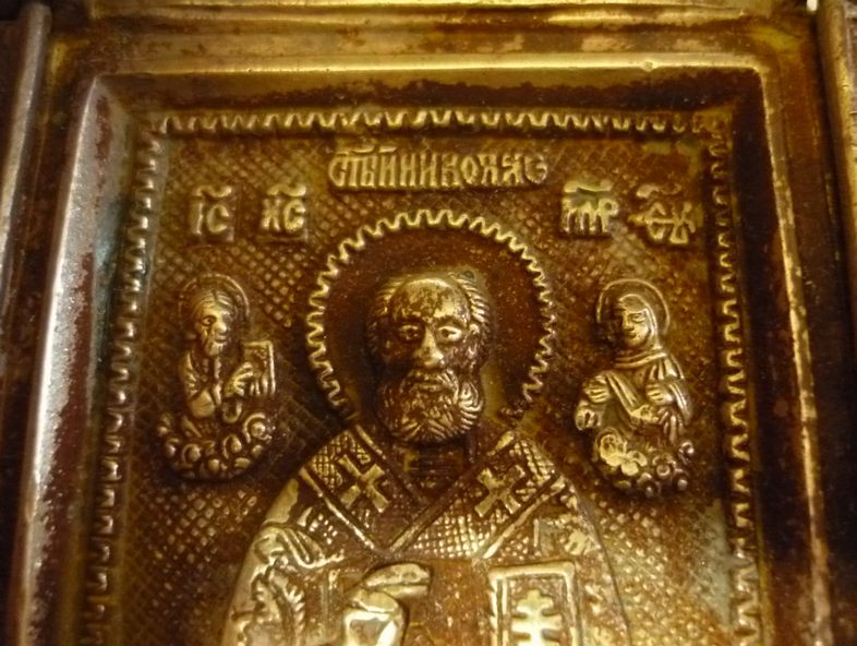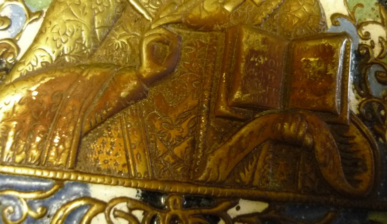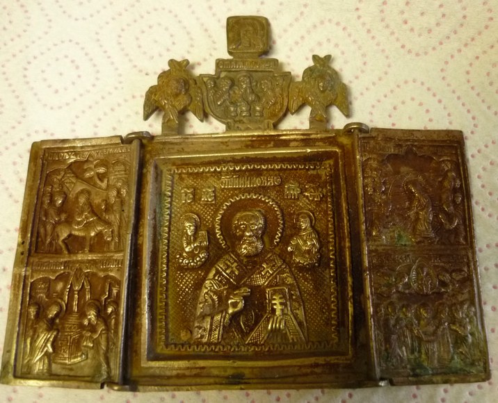 QUOTE(Лес.Ник @ Apr 23 2018, 18:01) Спасибо.Интересно попробовать.А с эмалями ничего не будет? Вот еще на колокольчиках то же хотелось бы убрать. Иконка была отснята "ДО"... потом сравнивал с "ПОСЛЕ" - откололся кусочек, примерно 3х2 мм... Не факт, что от кипячения... потом иконку драил обрезанной зубной щеткой... Закладывал в холодный р-р... вытащил из него, когда он подстыл, градусов до 60... потом остывал на воздухе... -------------------- Одна голова - хорошо... две - лучше... а три - мы не прокормим...