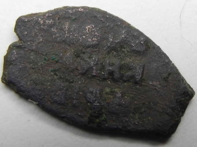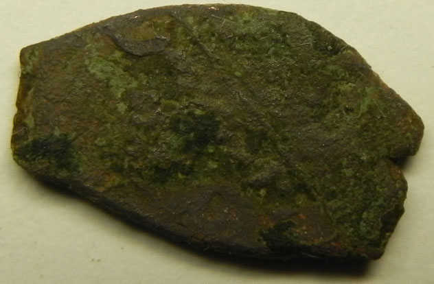 Видимо лежащий рядом предмет из железа прям таки дифундировал в медь. Неоднократно сталкивался с такой ситуацией - трилон не берет, да что трилон лимонка не помогает. Механическую расчистку применять долго, да предметы ценности большой не имеют. |