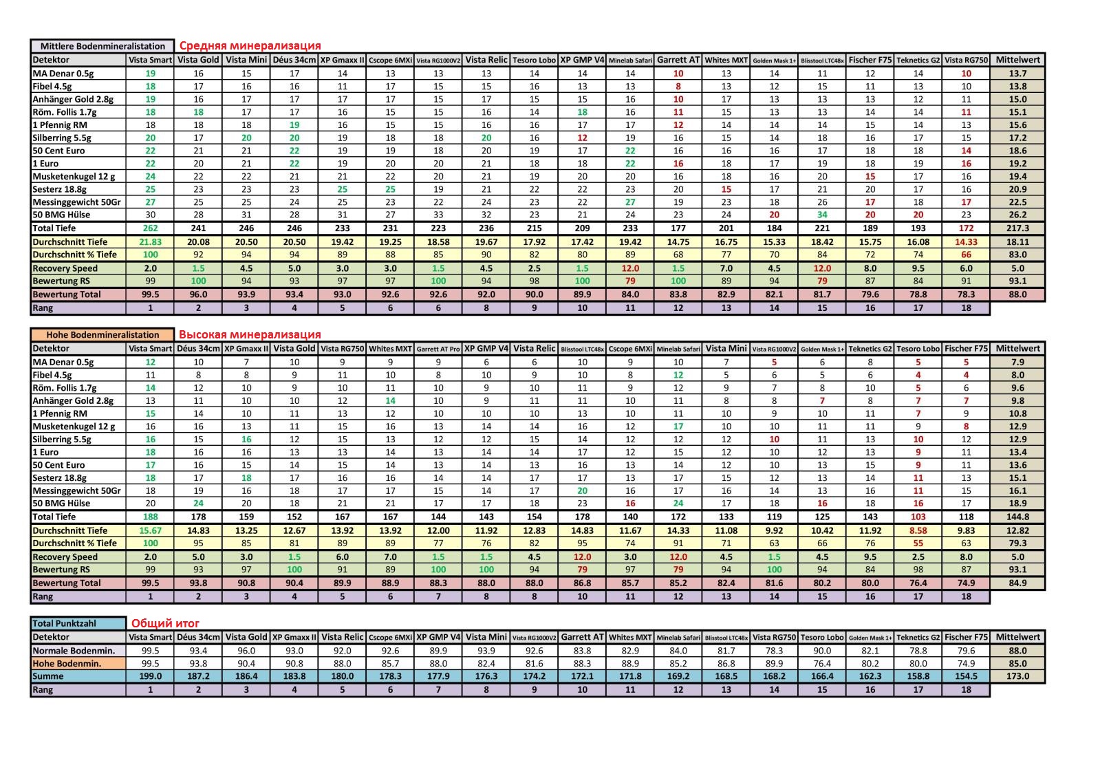QUOTE(zakret @ Apr 5 2017, 21:41) Извиняюсь не в тему..а может что достойное слышали о Troy Shadow X- 5 ? Не слышал абсолютно ничего достойного о Трое! Как и недостойного. Вы намерены спрашивать обо всех известных производителях и обо всём множестве их моделей? Бестолковое дело, вы просто заблудитесь и ничего не купите, а сезон совсем на носу, у многих уже начался. Под ваши цели я дал и повторю свою рекомендацию - Vista Smart/Smart+. Поверьте одиннадцатилетнему опыту в копе, посмотрите сравнительную таблицу несколькими страницами ранее, спишитесь с пользователями интересующих вас аппаратов. P.S. Попробую привести эту таблицу ещё раз в полном размере. Сообщение отредактировано Земснаряд: Apr 9 2017, 11:09 Вложенные эскизы изображений -------------------- Не бойся, что жизнь кончится, бойся, что не начнётся!