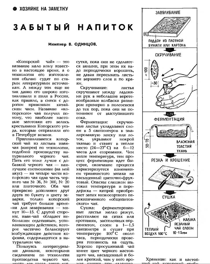 QUOTE(Нинука @ Jan 1 2016, 21:57) Нам же любой опыт бесценен, тем более, как я поняла, точного рецепта (старинного) ни у кого из нас нет... Действительно старинный рецепт до нас не дошёл, но думаю технология, описанная В. Одинцовым в журнале «Наука и жизнь» №7 за 1989 год наиболее близка к этому. Моя дружба с кипреем началась именно после прочтения этой статьи "Забытый напиток". Вложенные эскизы изображений |