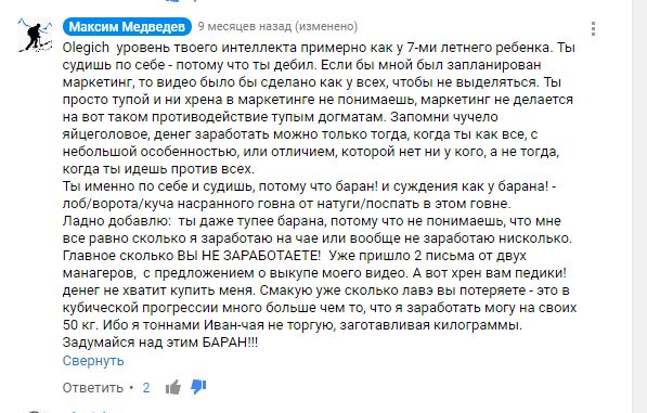 QUOTE(Андрей А А @ Jul 1 2017, 02:22) Последние строки в этом комменте улыбнули от души Про маркетинг это улёт Так он по ходу не просто с претензией на значимость, он реально с синдромом Наполеона, да ещё и деревянный по щиколотку. QUOTE(Андрей А А @ Jul 1 2017, 03:45) А вообще, очень нестандартный подход к рекламе. Итог: - заказчики на ура по 5000 руб. за кг. Про подход согласен, креативенько, но топорно... А вот про заказчиков вы это серьёзно? Неужели Народ повёлся на эту пургу? QUOTE(Андрей А А @ Jul 1 2017, 05:14) Не... я душицей балуюсь. Мне кажется, если в меру, то для купажа с иван-чаем самое то. Присылали, пробовал. Для меня не вариант. Лучше уж у Юрича затарится Саган-Дайлёй. Вот где песТня Сообщение отредактировано Коловратъ: Jul 1 2017, 01:48 -------------------- Никогда не сдавайся!