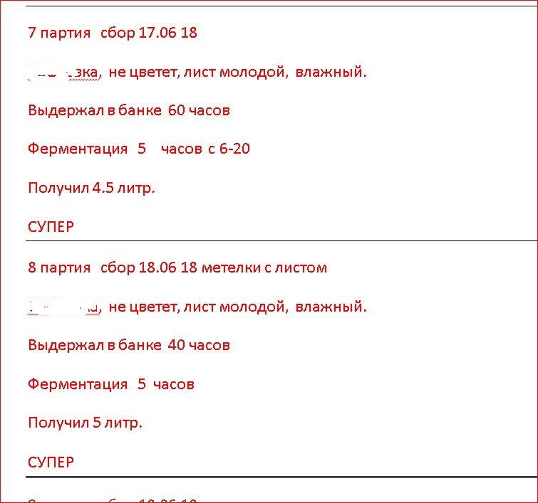 QUOTE(Старина Хэнк @ Dec 17 2021, 22:40) Ну фиг знает, крутил. старался. но без фанатизма конечно ДобрА! Может объем листа недостаточный для запуска ферментации.... Никогда, даже с крупно-листовым, осечек не было. Вот делал в два этапа: первичный - свежий лист в бочку 30 литров, плотно под завязку, сутки 25-28 градусов. ![]() Размял и в тазики (размер 30х30 см, глубиной около 20 см) часов 20-25 при температуре 25-28. После первичного этапа, мнется до нужной кондиции гораздо легче. ![]() ![]() ![]() Отферментированные, сырые плитки листа, вываливаю в пакеты и в холодильник, для остановки ферментации. Сушу постепенно в режиме конвекция 90 градусов, на весь объем уходит неделя, а то и больше. До того как лист попадает в духовой шкаф, он все время находится в холодильнике. ![]() Готовый на холодную ферментацию и употребление Мясорубочный проще, трудов меньше, а результат ничуть не хуже листового: Принес домой, никаких подвяливаний, через мясорубку в тазик, накрыл, сутки 25-28 градусов, плитки в пакет и в холодильник, сушка занимает как обычно больше всего времени. ![]() ![]() Сразу перерабатываю 35-40 кг. сырого листа. Вы еще упоминали "Собираю молодые верхушечные листики" Сбор веду так (правша): держу за верхушку ростишки левой рукой, правой зажимаю стебель под левой рукой и движением в низ, на расстояние вытянутой руки. Верхушечные молодые листочки остаются на растении. Они слишком сочные и требуют особого подхода, т.е. минимального времени ферментации, смысла с ними морочиться, большого нет. С у.в. Сообщение отредактировано fictilibus: Dec 18 2021, 21:47 -------------------- Изучаю миграцию червей...