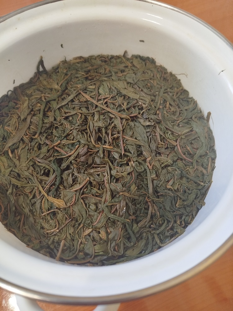 QUOTE(Урман @ May 28 2025, 11:32) Доброго дня. 60 -65 часов, при комнатной температуре, в темном месте. Этого достаточно, чтобы лист стал воглым (как тряпочка) и отчасти от ферментировался. Но и контролирую по цвету в банке. Лист с ярко зеленого должен стать зелено-бурым. 2-х литровую банку набиваю плотно. После этого вынимаю, рыхлю, (фото на скатёрке) небольшими жменьками скручиваю между ладонями и снова рыхлю и уже такой лист укладываю в 3-х литровую эмалированную кастрюлю. (фото в кастрюле) Слегка приминаю, на массу влажною х/б и кастрюлю закрываю крышкой. В процессе этой процедуры ( у меня уходит 45-50 минут из набитой 2-х литровой банки ) лист сложенный в кастрюлю становится еще темнее и даже могут побуреть прожилки (ферментация продолжается) Кастрюлю ставлю, где стабильная комнатная температура 24-25 гр. Уже через 2 -2.5 часа можно вынимать, нарезать и сушить. (фото на доске) К этому времени появляется фруктовый запах, лист становится темно бурым, прожилки тоже Если в помещение прохладно (20-22 град.) то можно и выдерживать до 5 часов, но главное не передержать в кастрюле (пропадает хороший запах, вкус) и не подвергать массу высокой температуры (греть, ставить на солнце и.т.п.) процесс должен быть естественным. Всё это справедливо для молодого, сочного, майского листа. Удачи! Благодарю за подробный рецепт! Тоже стараюсь в последнее время не увлекаться с температурой. А вот по времени у меня всё быстрее. Если утром , в полдень, собрал лист, то на следующий день вечером уже сушу в сауне... За три дня листа прибавилось, набрал маненько. Завтра опять баньку топить |