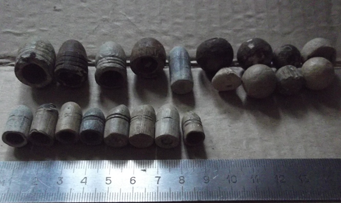 Подскажите из чего стреляли этими шариками что на фото? Вес почти всех шариков 10,6гр. Несколько по 11,4гр. + есть 2 железных по 8гр. и какие то две металлические сферы, может конечно к пулям не имеют отношения - обведены красным.