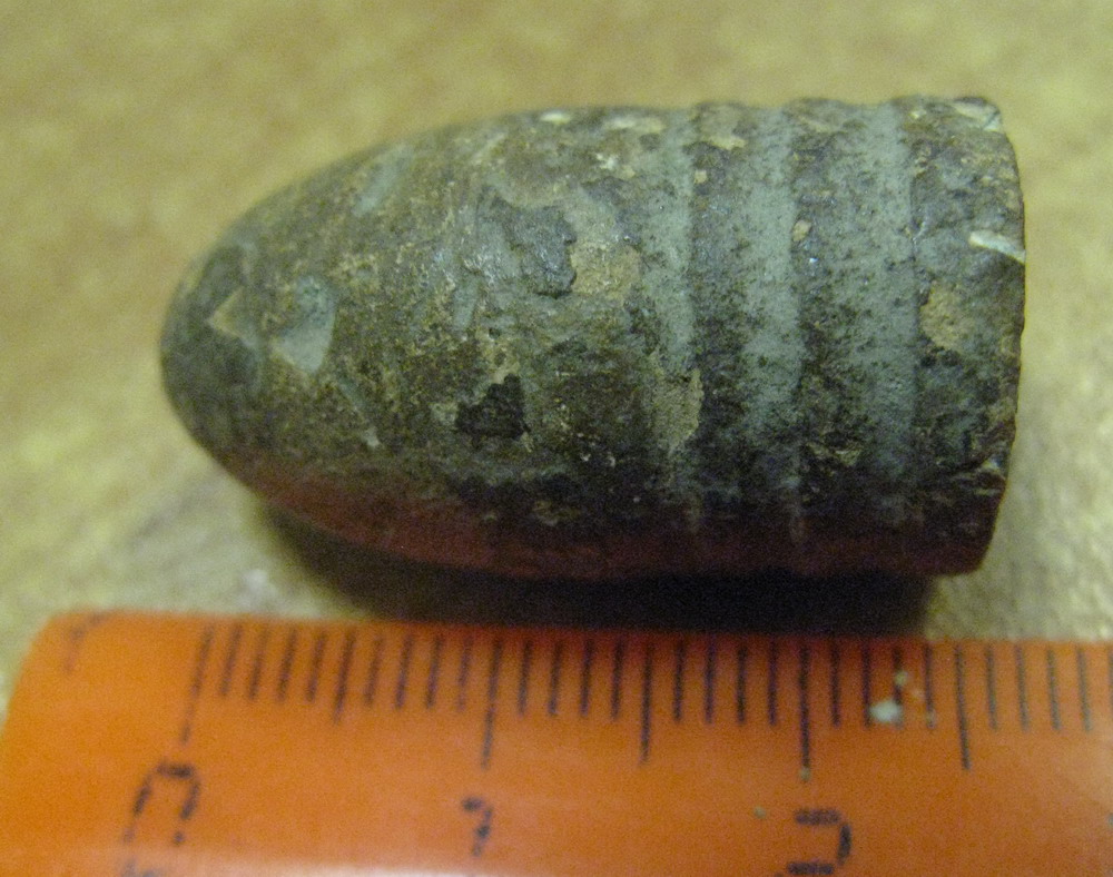 QUOTE(byval @ Oct 30 2013, 22:55) Привет любителям пуль! Вот такую огромную пулю нашел в земле в Брестской области, в донце, в отверстии, металл-магнитится. Похоже на пулю системы Минье к русскому шестилинейному ружью образца 1856 года. |