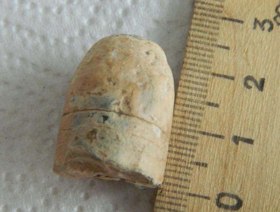 Здравствуйте, сегодня попалась вот такая пуля, высота 30 мм. диаметр 18 мм. материал свинец, подскажите пожалуйста по находке, найдена в Рязанской обл.