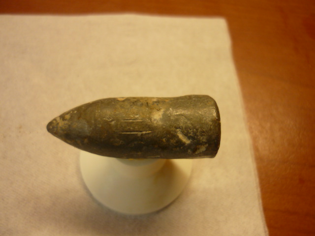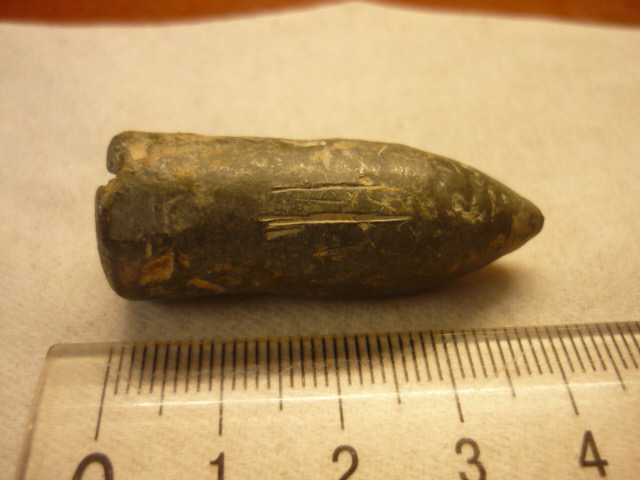 Пуля от охотничьего ружья, нарезы от ствола, 20 век калибр по диаметру.