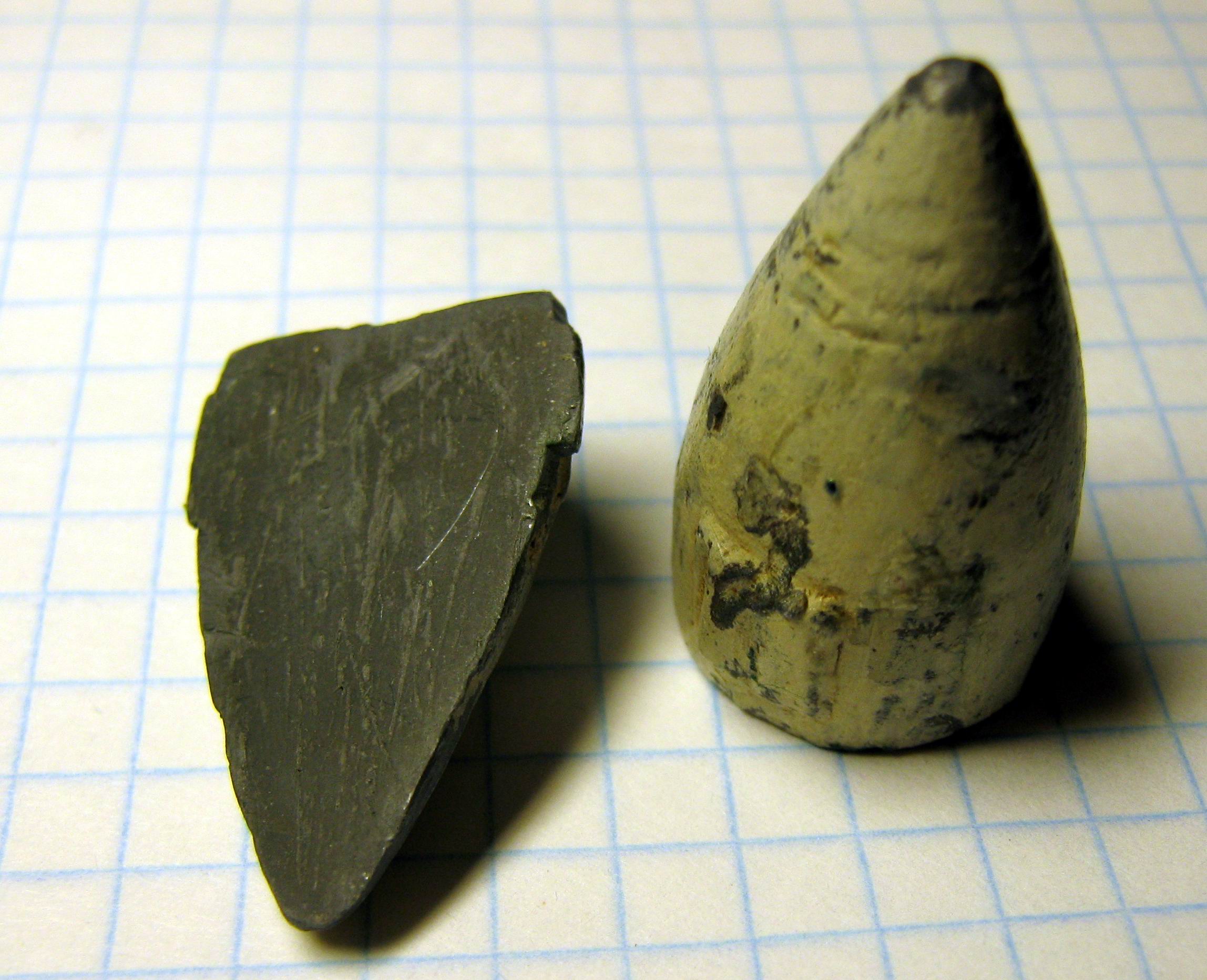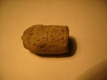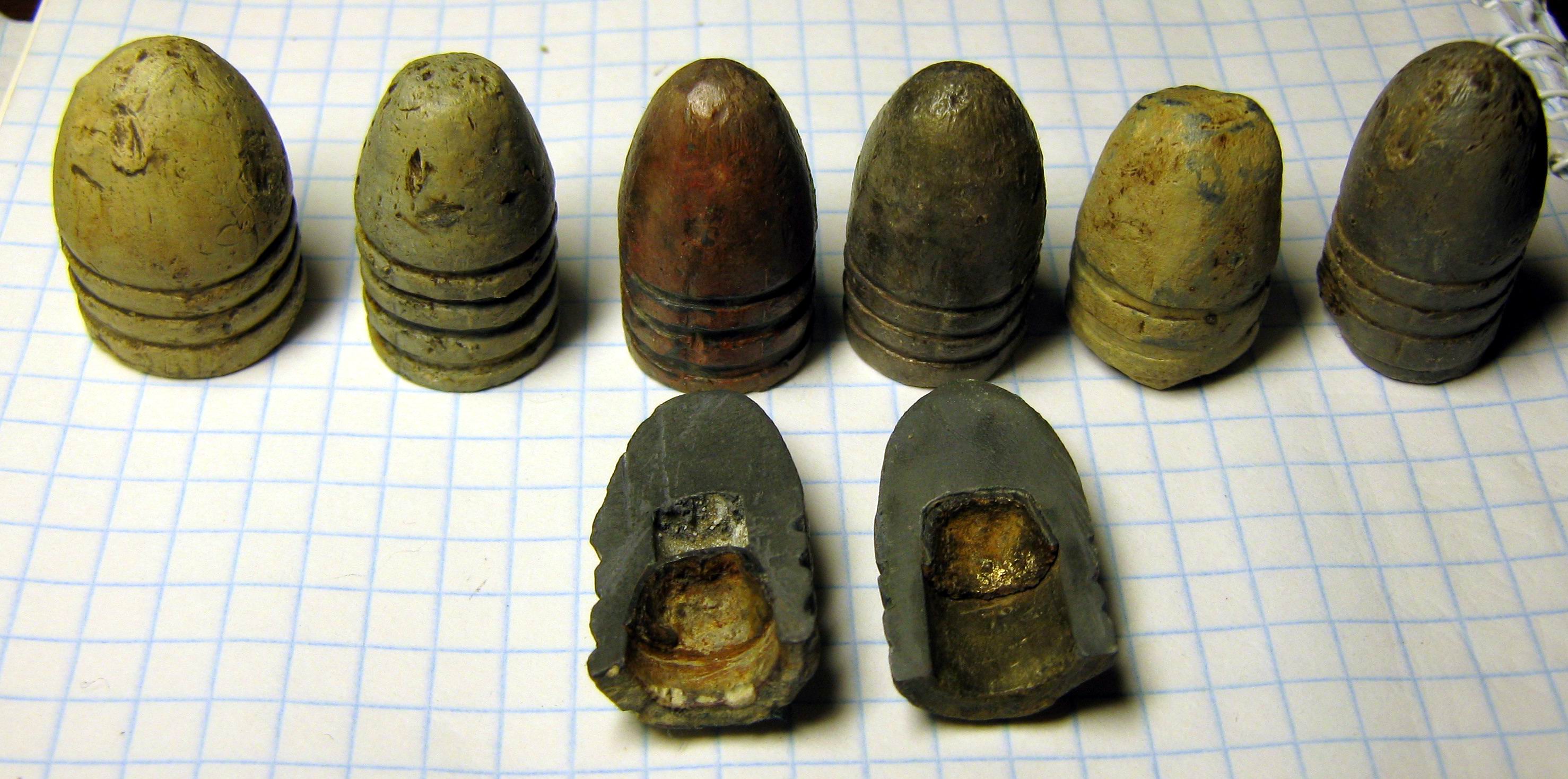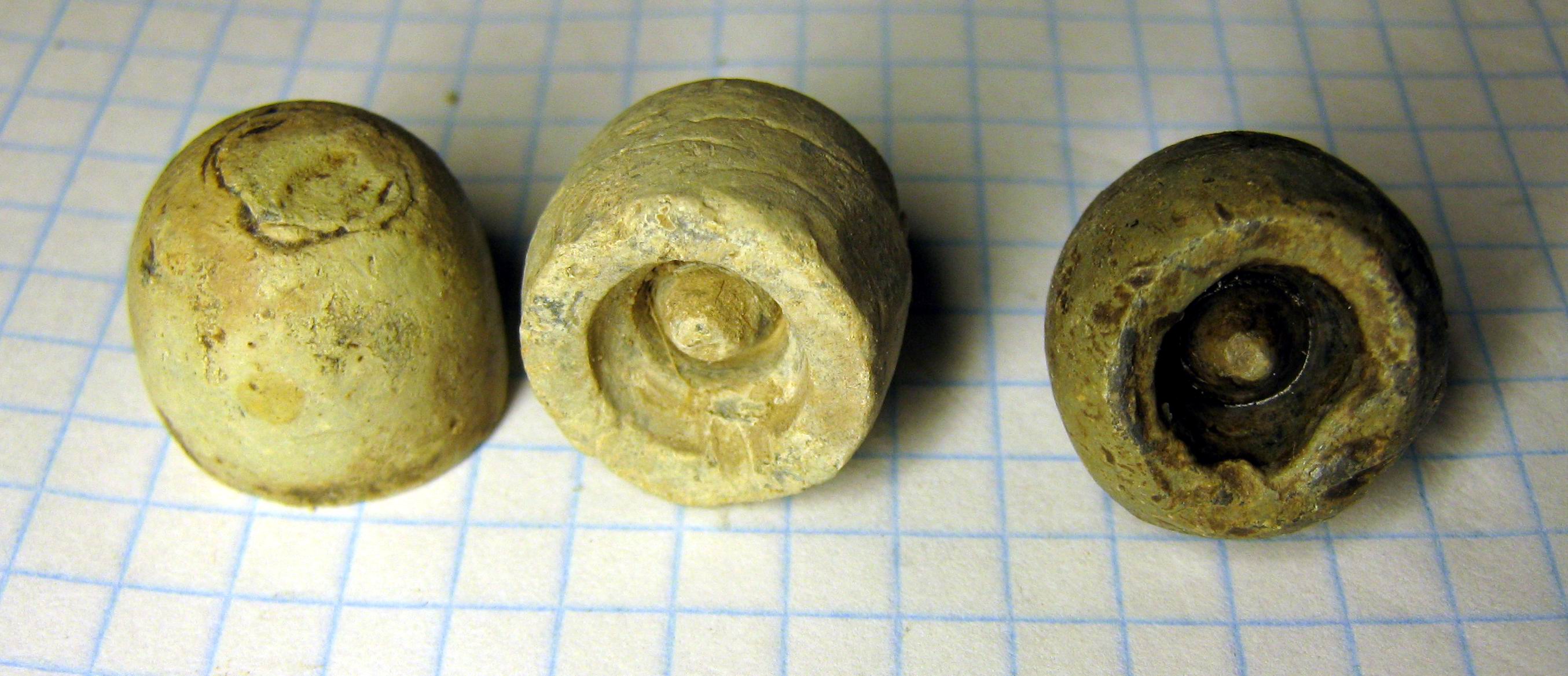 К сожалению первые фото были без масштаба и определить размер непросто Похожа на пулю Минье и иже с ними Как правило имеет три каннелюры, после выстрела значительно деформируется (расширяется) вплоть до утраты оных Пули клеймятся совершенно иначе. На фото вижу поперечные царапины наложившиеся на остатки канелюр |