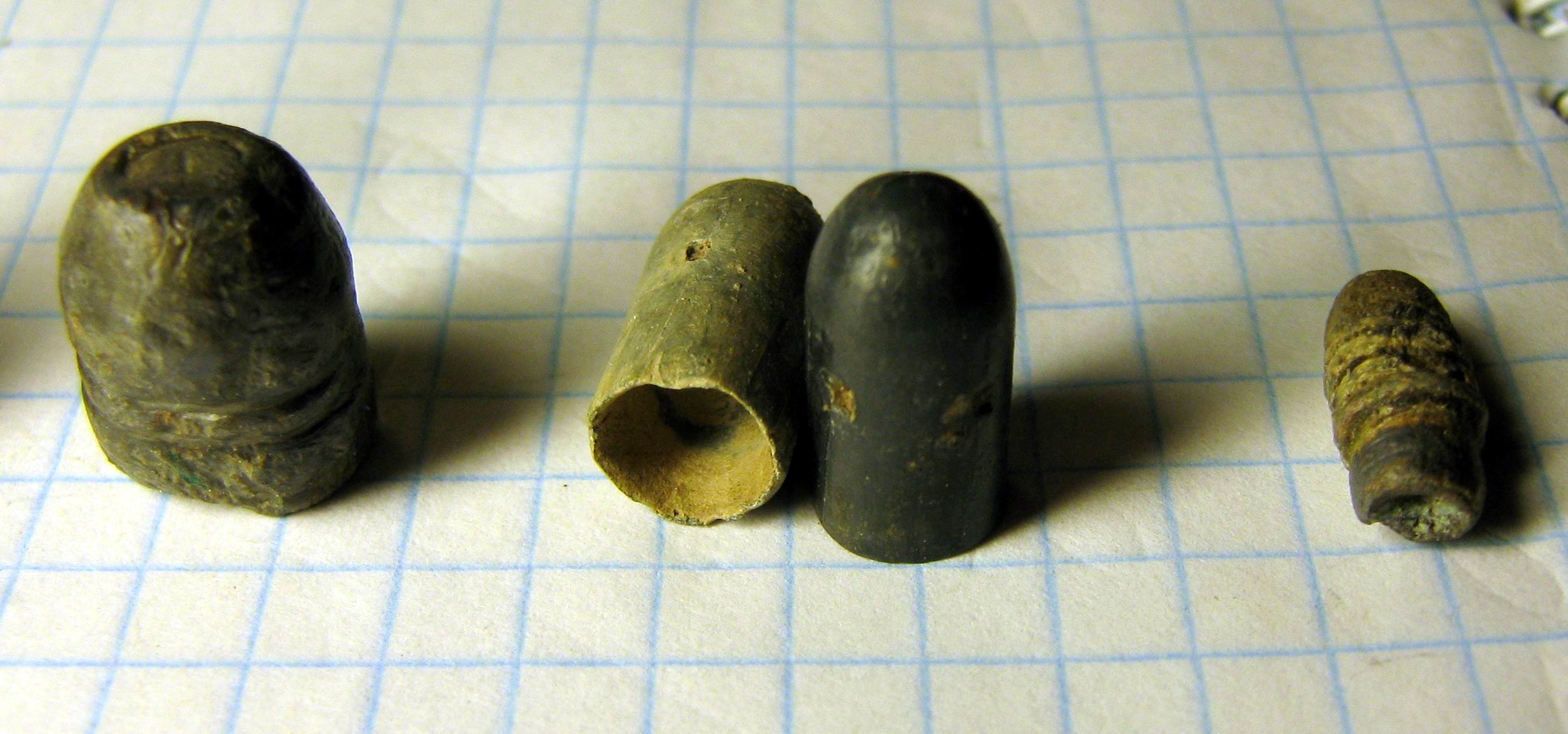Приветствую! Буду выкладывать кое-что из своих находок. Начну с 1812 года, окрестности Старой Калужки. В правом верхнем углу 2 пули (одна расплющена) от штуцера, по центру вверху пуля со следами зубов
