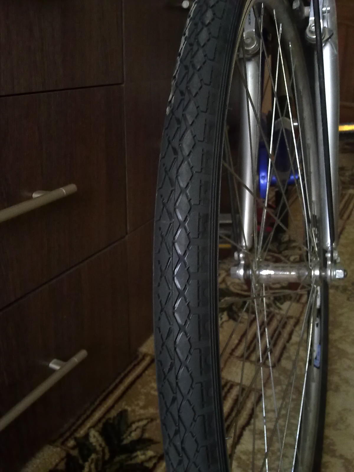 Посмотрел переднюю покрышку, две-три малые трещинки, видимо пошли от порезов стекла, есть у нас такая традиция бить бутылки на тротуарах... в остальном все отлично. 5 лет в строю, 10.000км и всего два прокола, очень даже неплохой результат