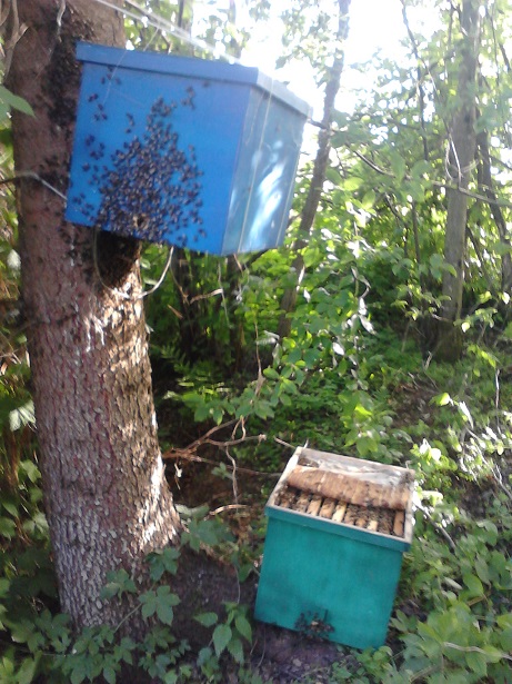 Проверил все ловушки (24шт). Влетело 10 роёв, в 3-х разведчики ещё кружат. Один рой пришлось огр######, привился на ловушку в которой уже работала семья. Языков уже настроил и мёда в них налил, всю ловушку воском забрызгал.