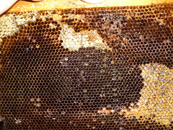 (возможно проходил воздух (как я подумал)). Недели три назад я забрал оставшиеся рамки и поставив их в картонную коробку, поставил их на застекленный балкон. Пару дней назад решил поглядеть их, что бы потом некоторые из них положить в качестве подкормки в другие ульи. К моему удивлению сырость увеличилась, каких либо признаков болезней и вредителей не обнаружил, нет запаха. Вскрыл некоторые как бы подозрительные ячейки, там мед...Все однородно. На фото видны не которые матовые изменения в ячейках , но это от вспышки и угла съемки. Вопрос : не ужели сырость может распространяться по сотом изменяя(разрыхляя шестиугольники сот) и не болезнь ли это какая? И можно дать ли такие рамки дать другим ульям. Пару дней эти рамки стоят дома, вроде подсыхают. Вложенные эскизы изображений |