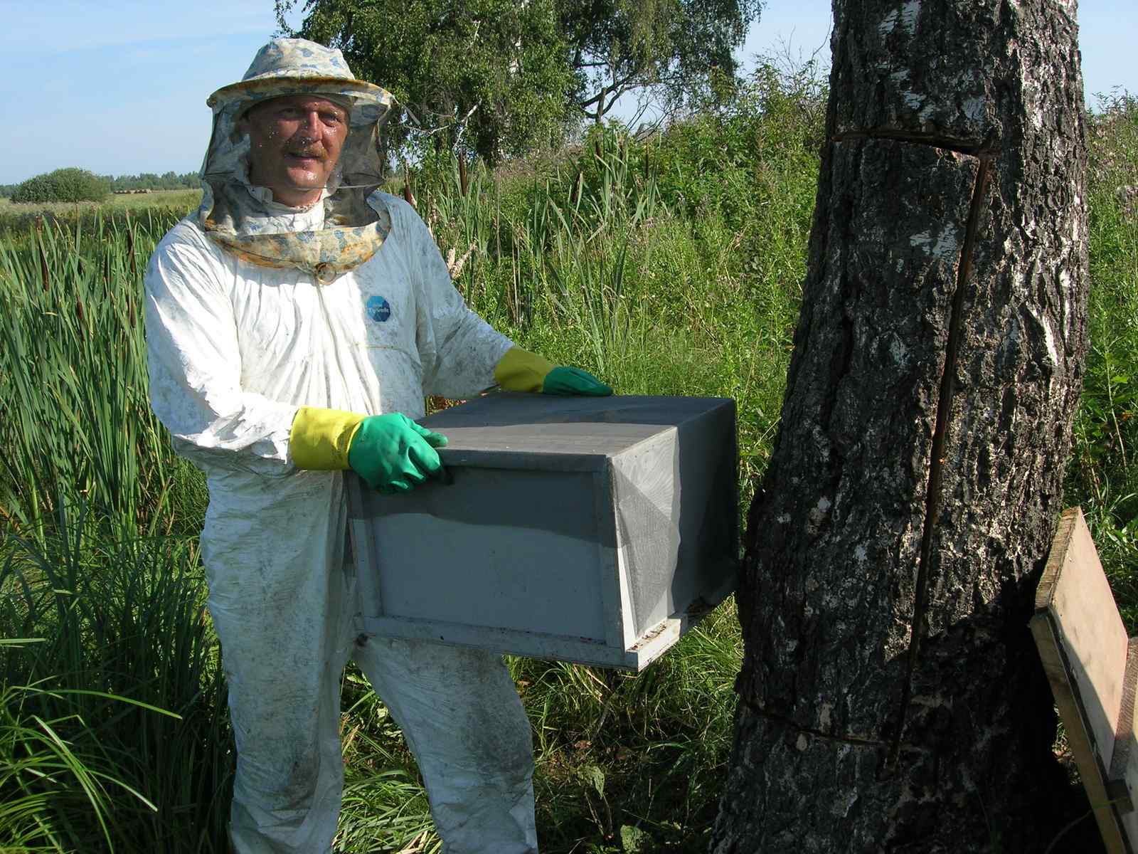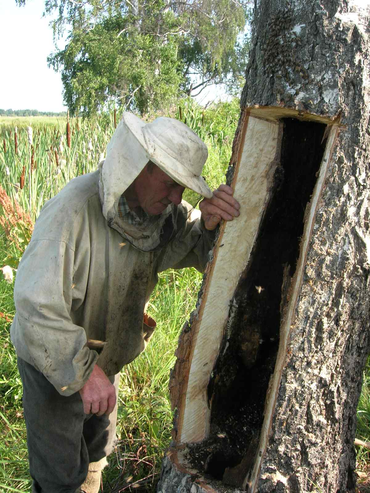 Piratino, да, Вы правы. Обычно леток дупла диких пчел находится на высоте выше человеческого роста. Предыдущие два дупла там и находились. Честно говорю, что деревья подрезали у основания, свалили, выпилили часть в которой находилось дупло и на Бухантере отвезли домой. Все операции по извлечению пчел уже осуществляли дома. Можно и на такой высоте пчелок извлечь из дупла, но на дереве придется леса строить из подручного материала. Жалею, что не сделали так в свое время. И деревья были бы целы, и последующим роям было бы убежище. -------------------- Не будите спящего медведя, ему снятся пчелы.