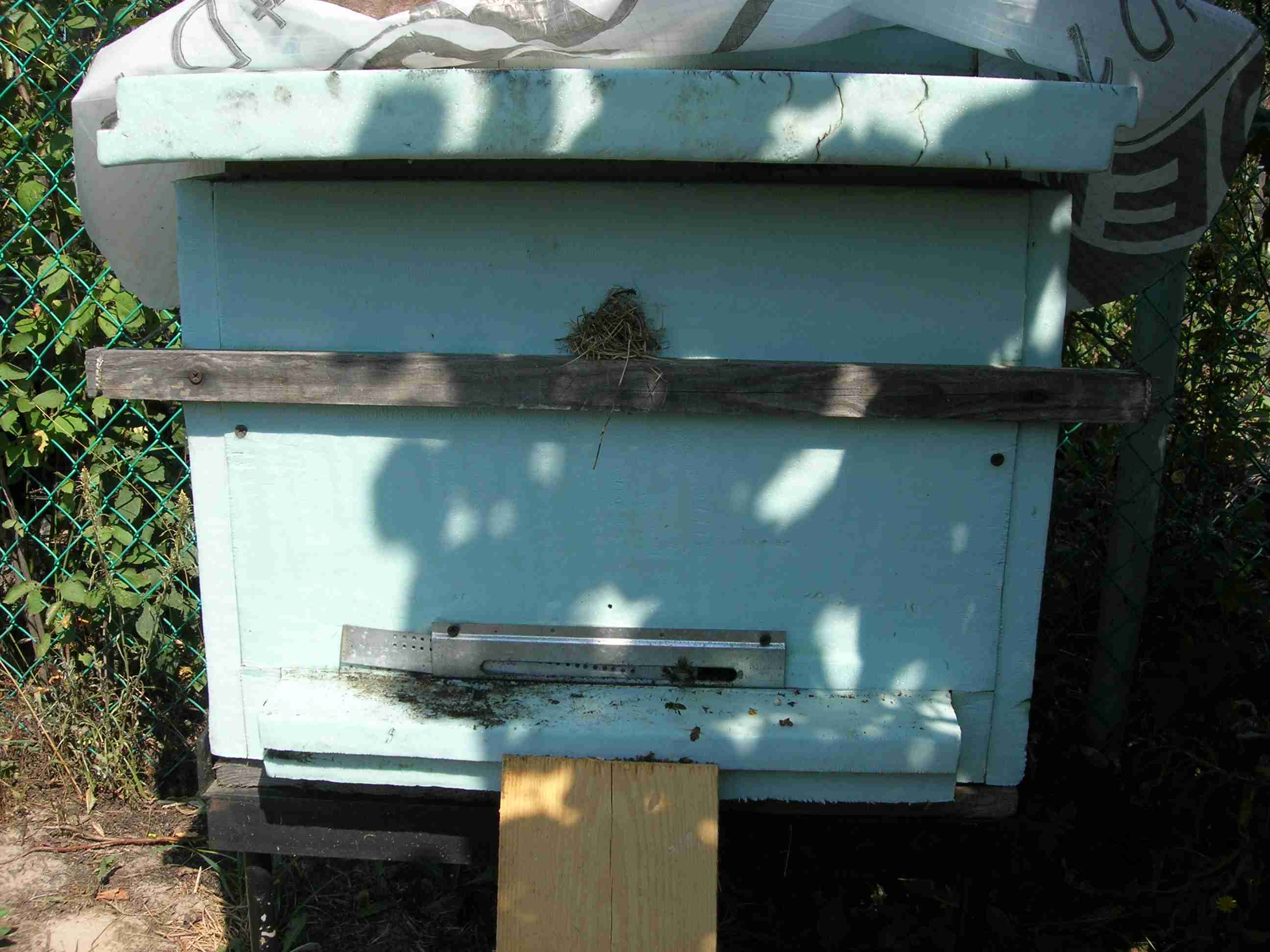 В прошлые выходные добавил в новую семью корпусную рамку из своей сильной семьи, с обеих сторон с запечатанным расплодом. Немного у пчелок было собственного расплода. Все переживал о том, чтоб ни мои, ни соседские пчелы не разворовали такую слабую семейку. Слава Богу этого не произошло. В эту субботу был облет небольшого количества молодой пчелы из их собственного расплода, в воскресенье был массовый облет из добавленной мной рамки. Летная пчела почуяв облегчение, интенсиво начала тащить обножку. Не знаю, как будет дальше с погодой, но в сентябре обильно подкормлю и обработаю против клеща, потому как при облете с десяток пчел с недоразвитыми крыльями вышли из улья.