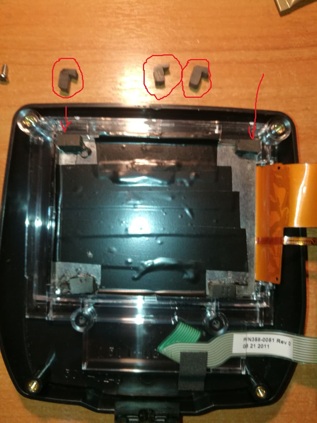 Переделал крепление платы верхнего блоке. Странно что с за десять лет с платой так ничего и не случилось, только немного выгнуло по центру. Экран прижимали две полоски из пористой резины которые и деформировали плату. Я их убрал . Отрезал от полосок семь восемь мм и наклеил по углам дисплея. В верхней части корпуса есть паз шириной 4.5 мм. Я сделал три уголка из пластика и вклеил их в этот паз супергелем. теперь верхняя часть платы вставляется под эти уголки а низ так и прикручивается на два винта. Все плату больше не гнет, стоит абсолютно ровно и крепко.
