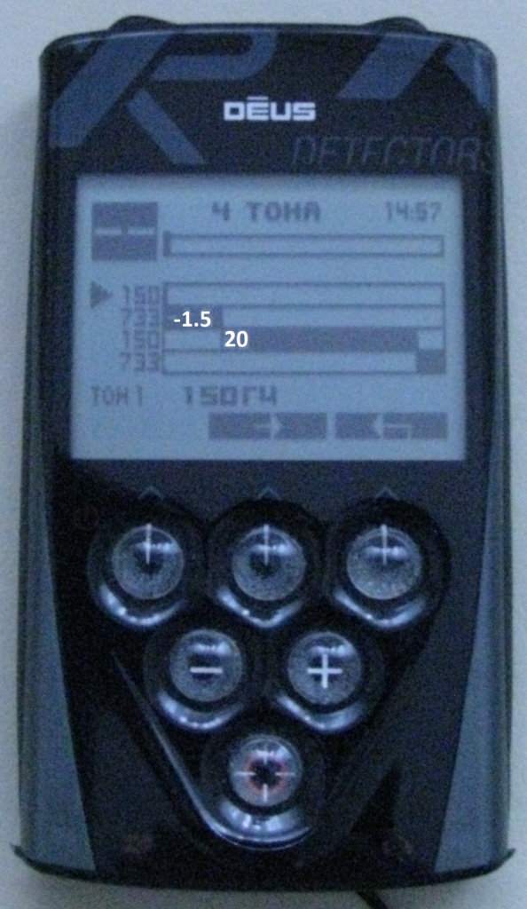 QUOTE(Крохобор @ Apr 26 2019, 14:37) Программа для зачистки, применять только там, где имеет смысл Как "ходовая" категорически не подойдет. Все сигналы без ВДИ и с монетным звуком - копать. Все сигналы с ВДИ 00-02 и монетным звуком - НЕ копать Дискрим -1.5 150 от -6.4 до -1.5 733 от -1.5 до +2.0 150 от +2.0 до +9.0 733 от +9.0 до +99 У вас на фото треугольная стрелочка установлена для настройки звучания первого тона(слева от цифры 150). Передвиньте эту стрелочку таким образом, чтобы она оказалась над цифрой 20-это верхняя граница звучания второго тона. Кнопкой "-" опустите эту границу до 2. Затем установите стрелочку над границей 3-ого тона и всё той же кнопкой "-" опустите её до 9. Сообщение отредактировано Иностранец: Apr 28 2019, 15:25 -------------------- Налейте водителю, ему же еще людей везти...