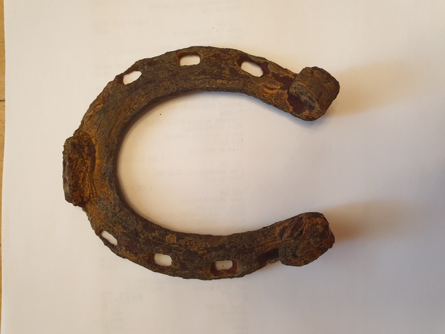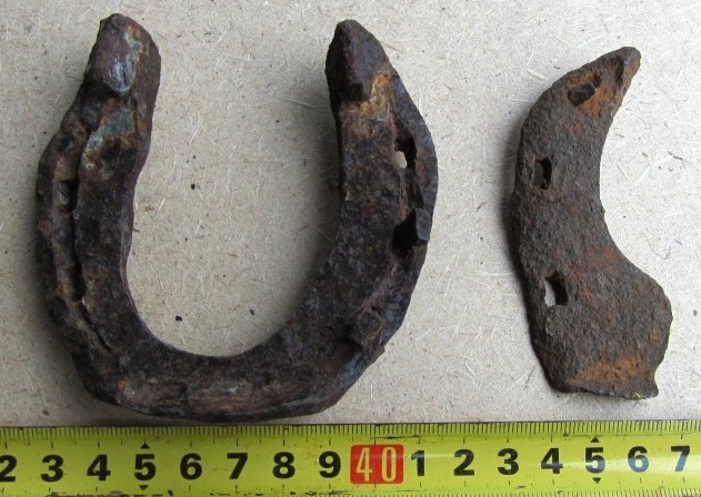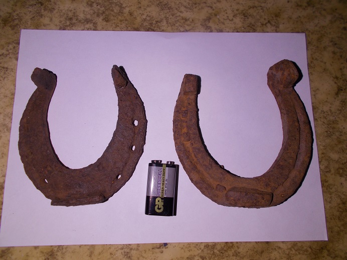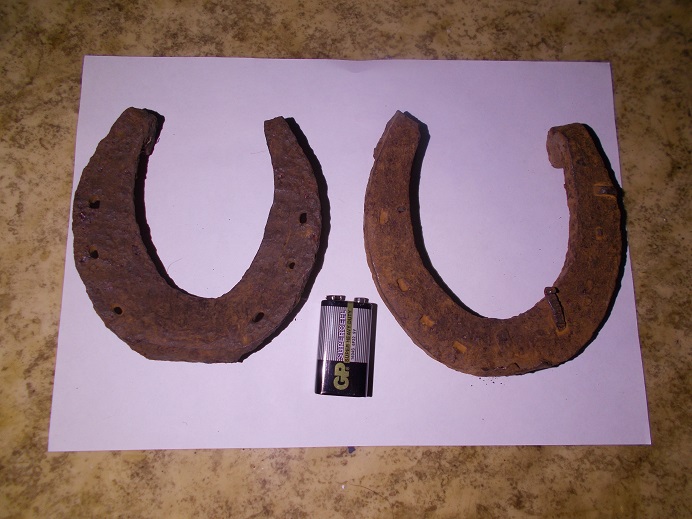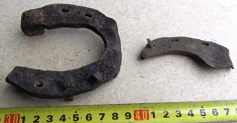 Друзья, я тут новичок, прошу не оставить без внимания и мой вопрос по подковам. Собрал под Волгоградом коллекцию подков, прошу дать хоть какую информацию по двум подковам, (нужно для музея) примерные века, и на какую лошадь она ставилась? Первая подкова примерно 9 на 9 см, толщина 1 см, вторая подкова т.е. часть подковы 8.5 см, толщина 5 мм, на ней есть небольшой шип примерно 2 мм, по отверстию под гвоздь которое сделано под углом на выход, можно предположить что подковывалась лошадь, но это только мои предположения.