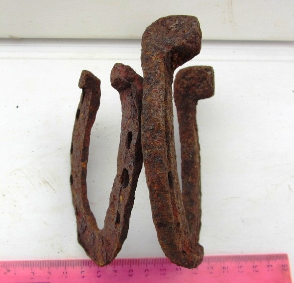 В своё время поднял на распашке деревни 17-го века. В металлолом отправлять не стал, первая подкова была в находках. Прошу подсказать по времени происхождения. С уважением! ![]() -------------------- старый ник jan.ned ,на форуме с 30.01.2011 года, репутация- 110кГ