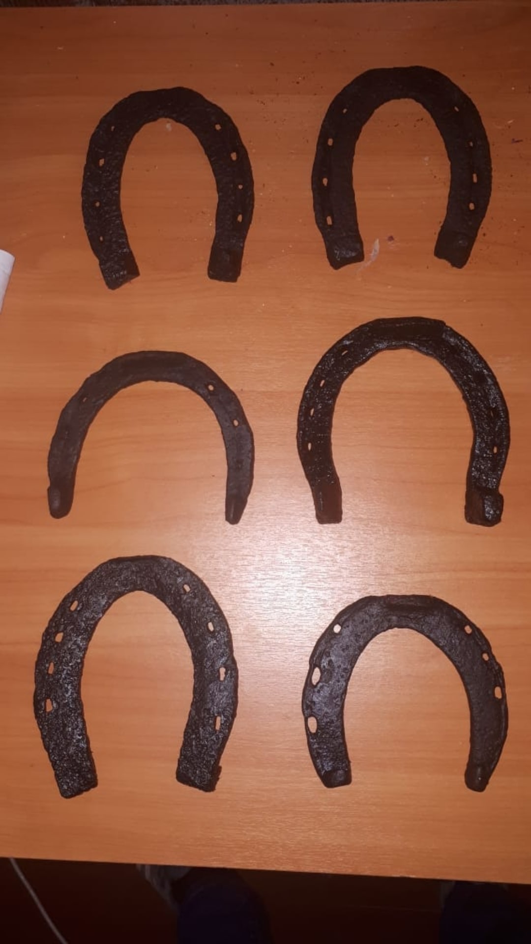 Здравствуйте уважаемые знатоки подков. Есть у меня две подковы найденные на Юго-Востоке Татарстана, прошу помощи с определением датировки. Одна целая подкова с каналами под гвозди, при чистке все гвозди рассыпались в труху. Вторая пол подковы меньше по толщине и высоте без каналов.