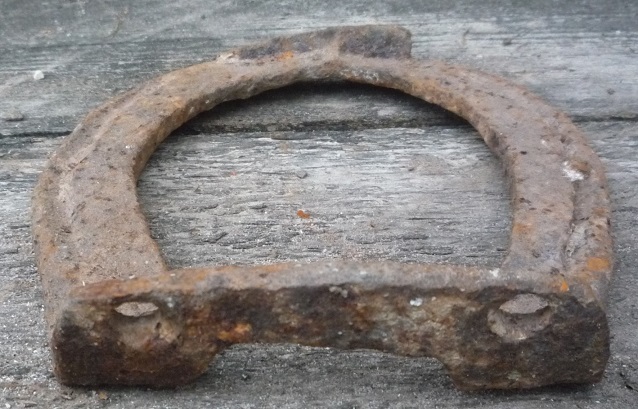 QUOTE(Комель @ Nov 17 2021, 18:38) Еще для наглядности Поздравляю, нечастая подкова. Чтобы точнее датировать, посмотрите (возможно придется чуть расчистить, чтобы увидеть) была ли резьба в отверстиях в нижней части? С отверстиями под вкручиваемые шипы делались во 2 пол нач 20 в, у этого экземпляра нижнюю часть могли загнуть для использования в качестве грунтозацепа, т.к. винтовые шипы часто ломались и выкручивались, так же либо с целью подгонки под размер копыта. Какой регион находки? -------------------- чаю воскресения мертвых и жизни будущего века аминь. Бывший ник - Фронтирер (репутация 91 кг)