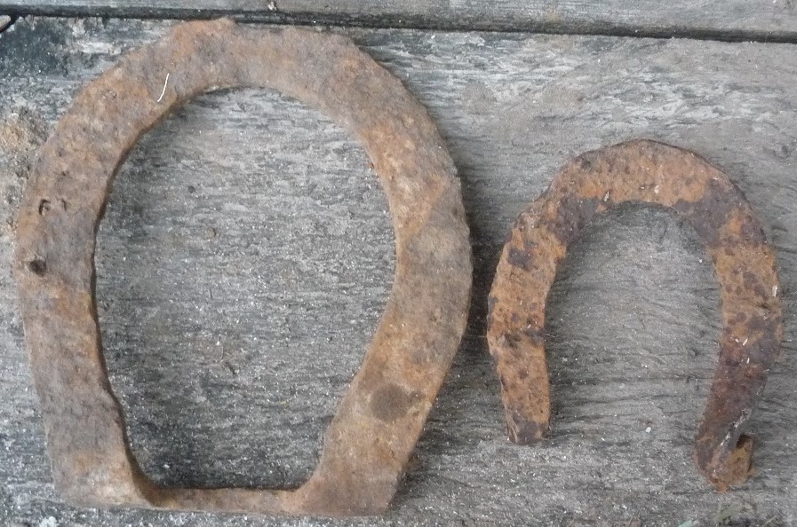 Добрый вечер, на полтора километра леса вдоль небольшой реки попалось более 40 таких подков, целые, поломанные пополам и на более мелкие части, дорог там от пгм и по наше время не было, сопутка от 15 и до 20вв. Подковы тоньше чем обычно попадаются, шипов нету, верх тоже у всех ровный, Гугл не помог. Тверская область. Чьих будут? Заранее спасибо. Доброго утра! Если без шипов, то летние, и хотя у летних тоже как правило были шипы (только поздние заводские попадаются в основном без шипов - там под них были отверстия с резьбой, но почему-то их редко привинчивали), они часто отламывались или истирались. Ваша скорее 19 века, если есть еще пара-тройка в более хорошем сохране, можно было бы сказать точнее. -------------------- чаю воскресения мертвых и жизни будущего века аминь. Бывший ник - Фронтирер (репутация 91 кг)