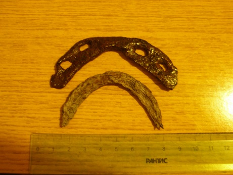 QUOTE(Фронтирер @ Mar 3 2014, 23:04) .... средний ряд, вторая справа - похоже, такого же назначения, было бы интересно фото получше сделать. ... Перебирал железо, еще несколько подков с желобком попалось.Первая уже стертая, а в одной были остатки какого то непонятного материала. Сделал фото по-лучше... |