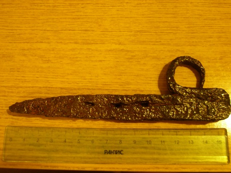 Как-то ранее в этой теме обсуждались изделия из отломанных дужек подков. Выкладываю фото так называемого "заколесника", как раз выкованного из дужки подковы 18в. Забавная судьба у этого кусочка железа - сначала потерялся как обломок подковы, затем кем-то был найден, перекован в другое изделие, потом снова был утрачен - и, наконец, снова увидел свет