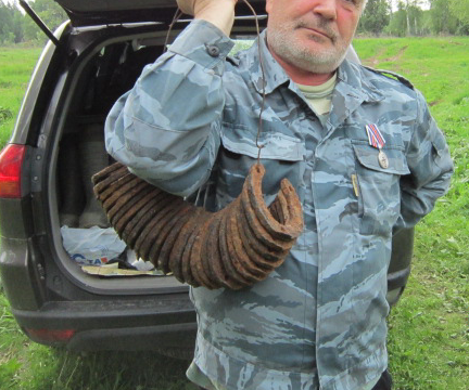 QUOTE(kotov @ Mar 7 2014, 15:36) Могут быть германские - размеры смотреть... Спецы подсказали, что это наши (Красной Армии), скаковые. Найдены в одном месте (примерно 3 на 5 метров)"Вяземский котел". Скорее всего хозяйственное отделение (отдел) кавалерийской части. Сопутка- бронзовые части сабельных ножен. Данные подковы, по всей вероятности еще не использовались, т.к. резьбы в отверстиях целы и глубина залегания небольшая (5-7 см). Германских пару нашли (в другом месте), лежат в гараже, при случаи фоткну. -------------------- Если что, бейте в личку! Но, тАрАпиЦа нИнАдА...