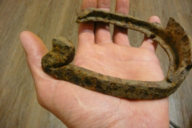 QUOTE(Rescuer @ Apr 7 2015, 00:08) На мой взгляд подкова выглядит крайне не устойчивой ,может загиб появился после потери или стол причиной .Да странная подкова . А может всё просто , её сделал ученик решил отличиться ...А мы тут голову ломай .... Трудно сказать. Но в этом районе попались 2 аналогичные, но только там гвоздевая и передний шип в "стандартном" исполнении, а перемычки такие же, одна со сломанной, но там толщина металла меньше была. Все находки в лесах, вдоль ручьев, на мой взгляд перемычка сделана для прочности, т.к. С - образные подковы часто ломались (позднее проблему решили увеличив толщину металла) -------------------- ВНИМАНИЕ!!! МОЙ АККАУНТ БЫЛ ВЗЛОМАН!!! НИКАКИЕ СДЕЛКИ ОТ МОЕГО АККАУНТА НЕ ДЕЙСТВИТЕЛЬНЫ!!!!