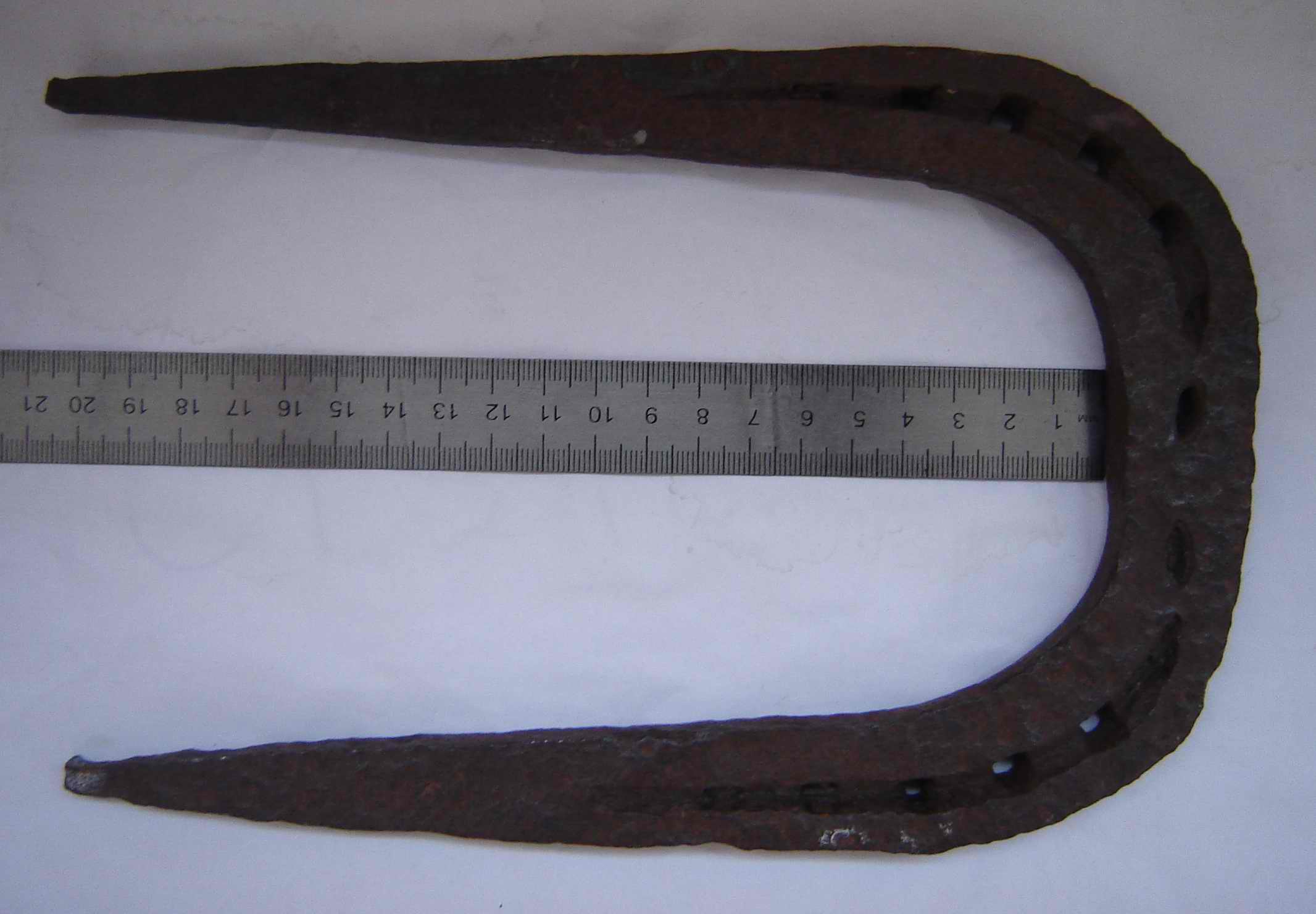 Недавно на старом урочище на границе Московской и Ярославской областей я нашёл довольно чудную подкову. Подковы я собираю давно; у меня их уже пара сотен, но такая попалась впервые. При её относительно небольшом размере (как и положено - лошадки в старину были меньше) подкова весьма широка. При этом по форме и строению она отличается от известных широких подков времён Грозного, да и побольше она немного. Очень интересная подкова. Помогите её распознать и датировать, пожалуйста. Вот она на месте обнаружения: ![]() А тут - после очистки ![]() Буду неслыханно благодарен за любую помощь в определении. -------------------- Пытался оставить подпись по-всякому, ничего не выходит. Как вы это делаете?