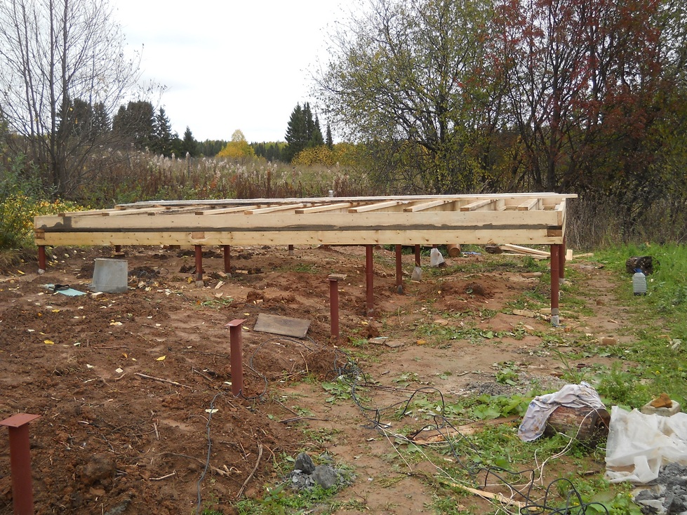 QUOTE(kukui @ Oct 8 2013, 19:32) Выше написал. Но дополню, внутри трубы не заливал, что б не разморозились, в каждую трубу кинул по березовому черенку, трубы Б,У. , когда варил , нефть еще пыхала. Почему такой вариант? Деньги. У нас ПГС нужно везти за 50км, Камаз 12тыр, а как строитель должны знать, выход на ноль, 40-60% сметной стоимости объекта. Пол тоже вата, половые лаги , получился деревянный двутавр 230мм высота 40+150+40, на нижней полке будет черновой пол, цоколь пока заделывать не буду, потом посмотрю. На курьих ножках пусть стоит. Блин ,а как поправить косяк веранды , столпы-подпорки просто стоят на отсыпке , каждую зиму дальние от дома края подбрасывает на 20 см ... Веранда 9*3 ,ходишь по ней зимой ,как уколотый ...Соединять с основным фундаментом ? |