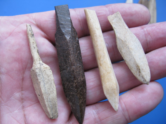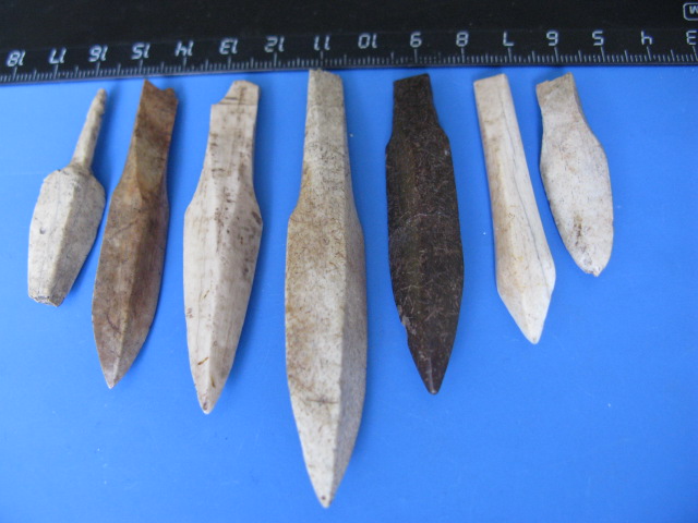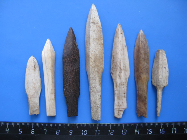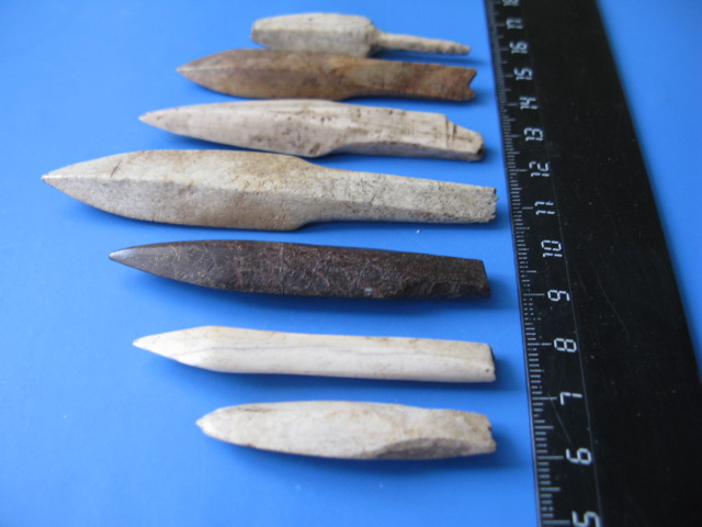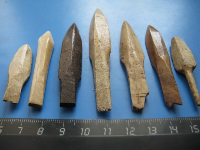 Обменный фонд костяных наконечников, фото № 1 с лева на право наконечники 3, 4, 6 выбыли.