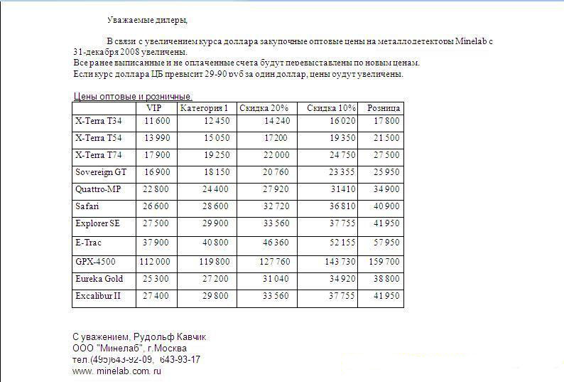 А если многие так яростно не пытались бы купить минелаб по низкой цене, возможно подорожания и не было бы !