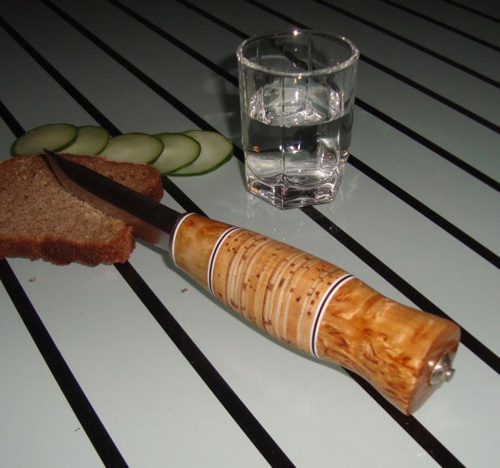 QUOTE(Seryga @ Feb 10 2011, 12:23) Спресовать надо на хвостовике, в 1.8-2,2 раза без клея(занимает много времени так как подкладывать надо по 2-3 листа каждый день), береста должны быть собрана весной, желательно болотная лучше методом разматыванияи примерно 1,5м высоты от корня отступить, от про замачивание и вываривание бересты объснить на словах не смогу это чутьё какое то образовалось, точного рецепта нет, ощущается это визуально и осязательно (Короче в итоге она засветится должна А щели это вобще брак конкретный для ножа и не только бересты это касается!!! Конечно возьму на заметку,но делать из бересты врядли буду. Делаю ножи раз в два-три года по мере неоходимости. Для рукояток столько сортов древесины.....,у каждого своя прелесть. Скажу только что рукоятки из пластика,резины и прочей синтетики ненравились никогда. С ув. |