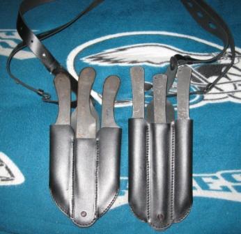 QUOTE(Петрович @ Feb 11 2011, 04:34) Нож этот неудобен для метания.Никаким способом.А это уже половина боевого применения. Нож с клеймом НКВД,это уже ближе к теме. А вот мои,походно-тренировочные. Глядя на ваши ножи сложилось впчатление,что они не покупались,а заказывались кому то или делались вами самостоятельно.Никогда не имел метательных ножей,видимо теперь приобрету.Дома в детстве метал в забор -------------------- Нам солнце светит всегда,пусть даже небо тусклое,