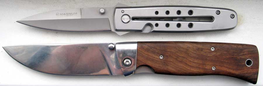 QUOTE(Блиндажник @ Feb 10 2011, 18:15) Господа Ножиковеды интересует ваше профессиональное мнение о данном режике....Тоскаю его уже порядка года,вроде ничего такой.....производитель Muella... зы.фото не мое... [attachmentid=346558] Сдается мне что он - "холодный как айсберг в АкИЯне"... Я все таки, сторонник не "обострять" с властями... У меня сейчас в "фаворе" 2 ножа... Магнум - "добросовестный" китаец (440с... с кого сперли - не знаю)... Стерх - кизлярский (железку не знаю)... Брал, хотел щечки на микарту оранжево-черную заменить... но пока решил "с этими поиграюсь"... Оба - ни разу не холодные... Магнум - по длине лезвия, Стерх по геометрии... Вложенные эскизы изображений -------------------- Одна голова - хорошо... две - лучше... а три - мы не прокормим...